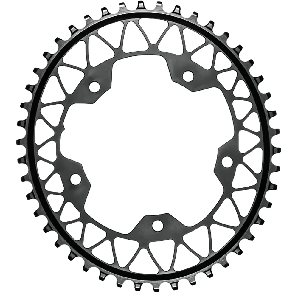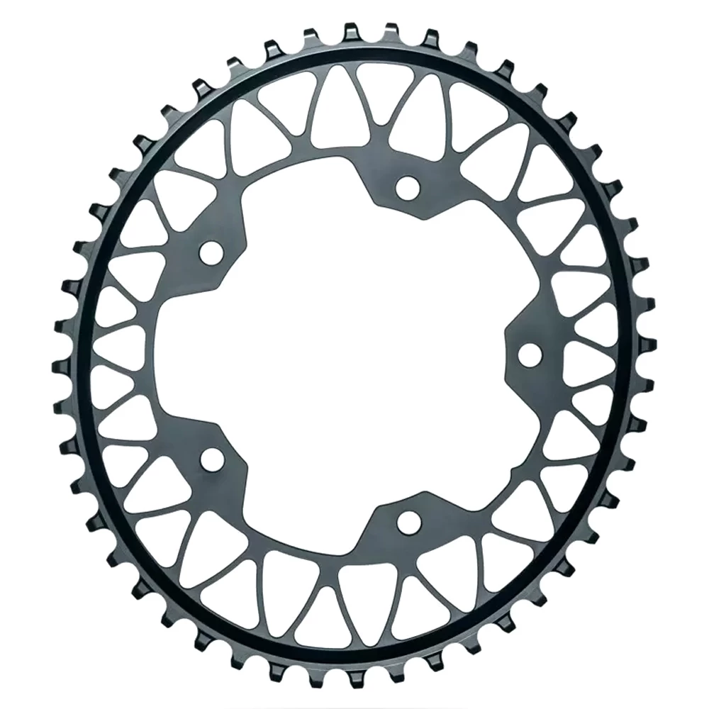 absoluteBLACK Premium 1X Gravel 110/5 bcd oval chainrings designed for all Shimano 5 bolt cranks like Dura-Ace 7950, Ultegra 6750, Shimano 105- 5750 and many others. Perfect choice for Gravel & Road 1X narrow wide setup. Delivered with mounting bolts for your convenience. Chainring has 1.5mm offset towards frame for perfect chainline. Super stiff construction despite many cutouts.