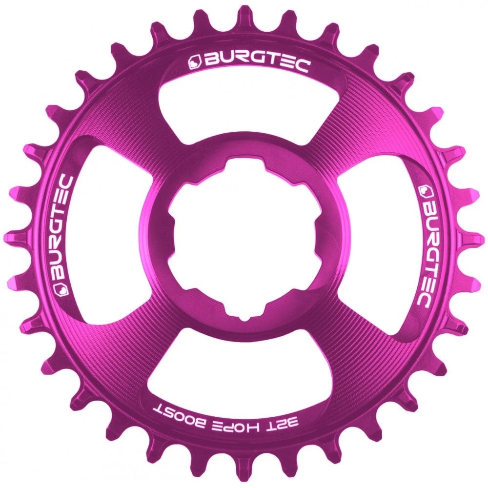 Fits Hope direct mount cranksets. Colour Available: Burgtec Black, Race Red, Deep Blue, Purple Rain, Kash Bronze, Iron Bro Orange, Rhodium Silver, Burgtec Bullion Gold, Toxic Barbie Pink