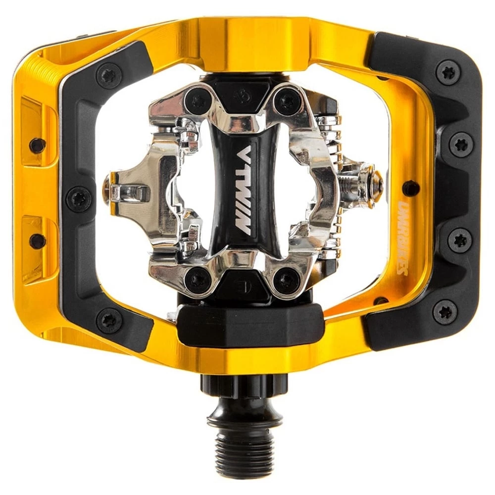 Based around the world renowned SPD technology we have engineered the most adaptable caged-clip system on the market. The DMR V-Twin offers a huge number of different grip and feel options. Using our range of pins paired with a unique Nylon “bumper” and Metal Shim feature, this DMR clip in pedal can be customised to optimise your float and preferences and improve your ride experience.