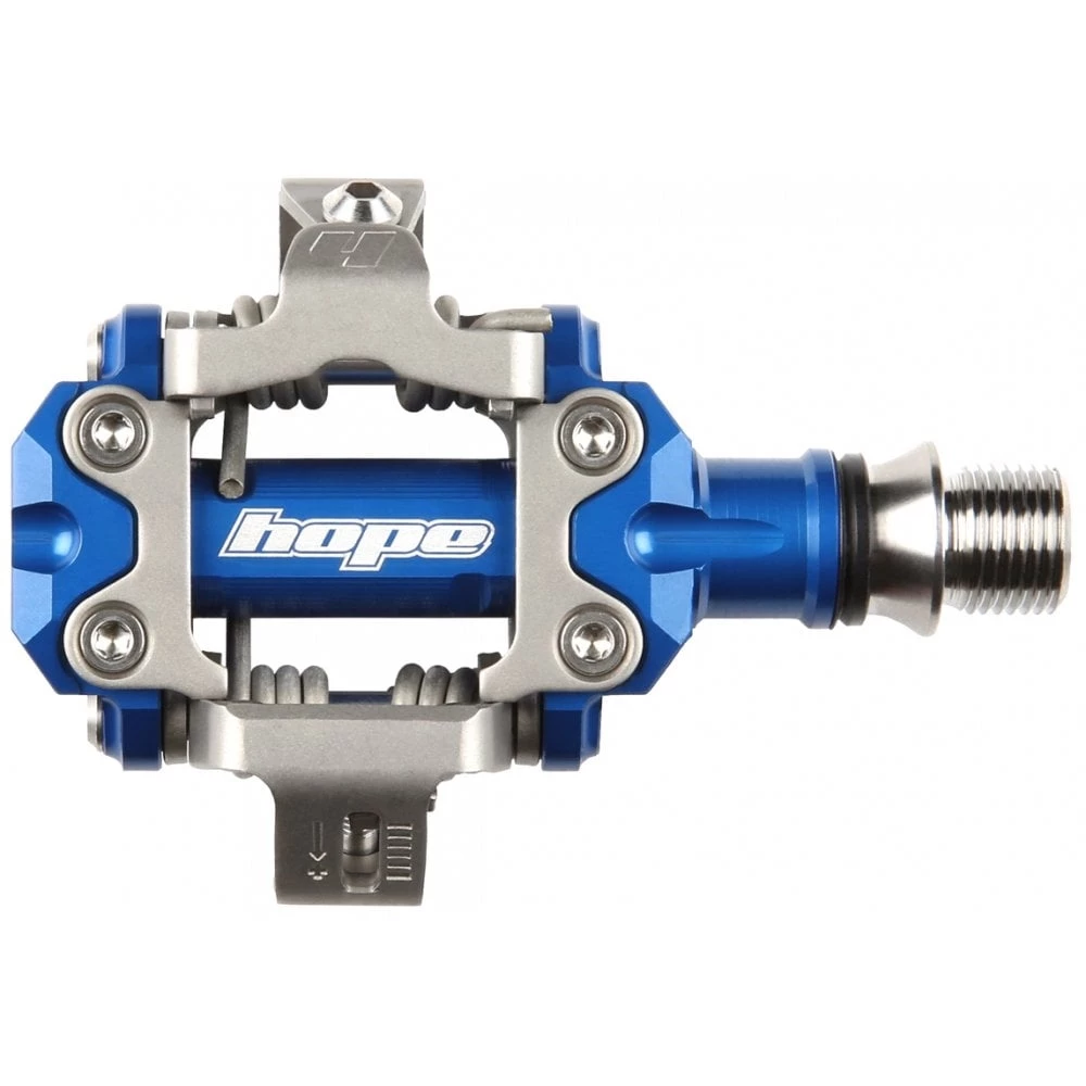 Their new mechanism design aims to provide easy pedal entry combined with secure cleat holding and positive release characteristics. Dual clip mechanism means the front clip can move on pedal entry to reduce the effort required to clip into the pedal and flatten the entry angle of the shoe, giving a wider cleat acceptance angle and allowing the front of the shoe sole to run closer to the pedal body to increase stability. Cleat release is driven off fixed pins for positive and consistent release. The Hope mechanism uses a specific cleat and is not cross compatible with other systems.