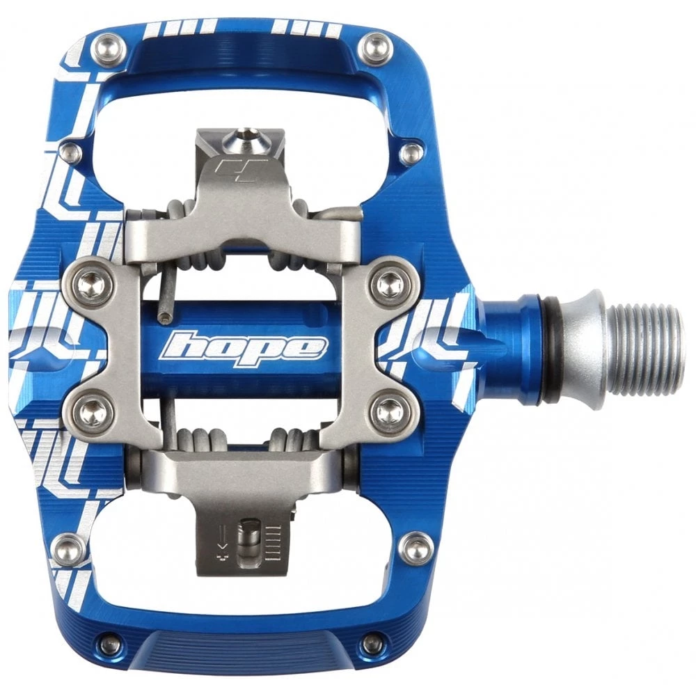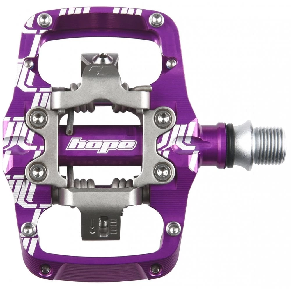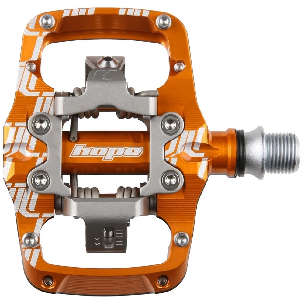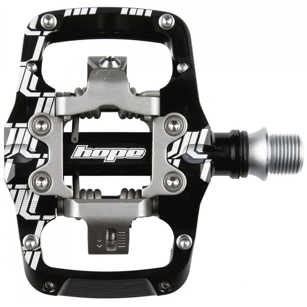 Their new mechanism design aims to provide easy pedal entry combined with secure cleat holding and positive release characteristics. Dual clip mechanism means the front clip can move on pedal entry to reduce the effort required to clip into the pedal and flatten the entry angle of the shoe, giving a wider cleat acceptance angle and allowing the front of the shoe sole to run closer to the pedal body to increase stability. Cleat release is driven off fixed pins for positive and consistent release. The Hope mechanism uses a specific cleat and is not cross compatible with other systems.