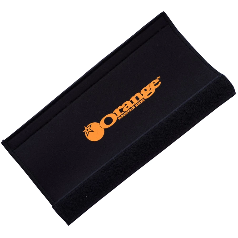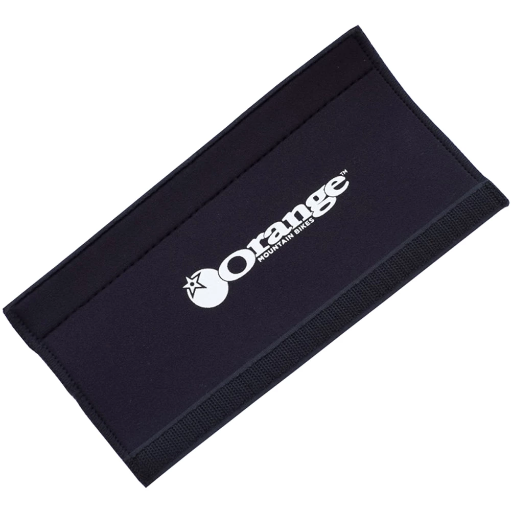 Neoprene chainstay protector. Reversible design, with orange logo one side, white on the other.