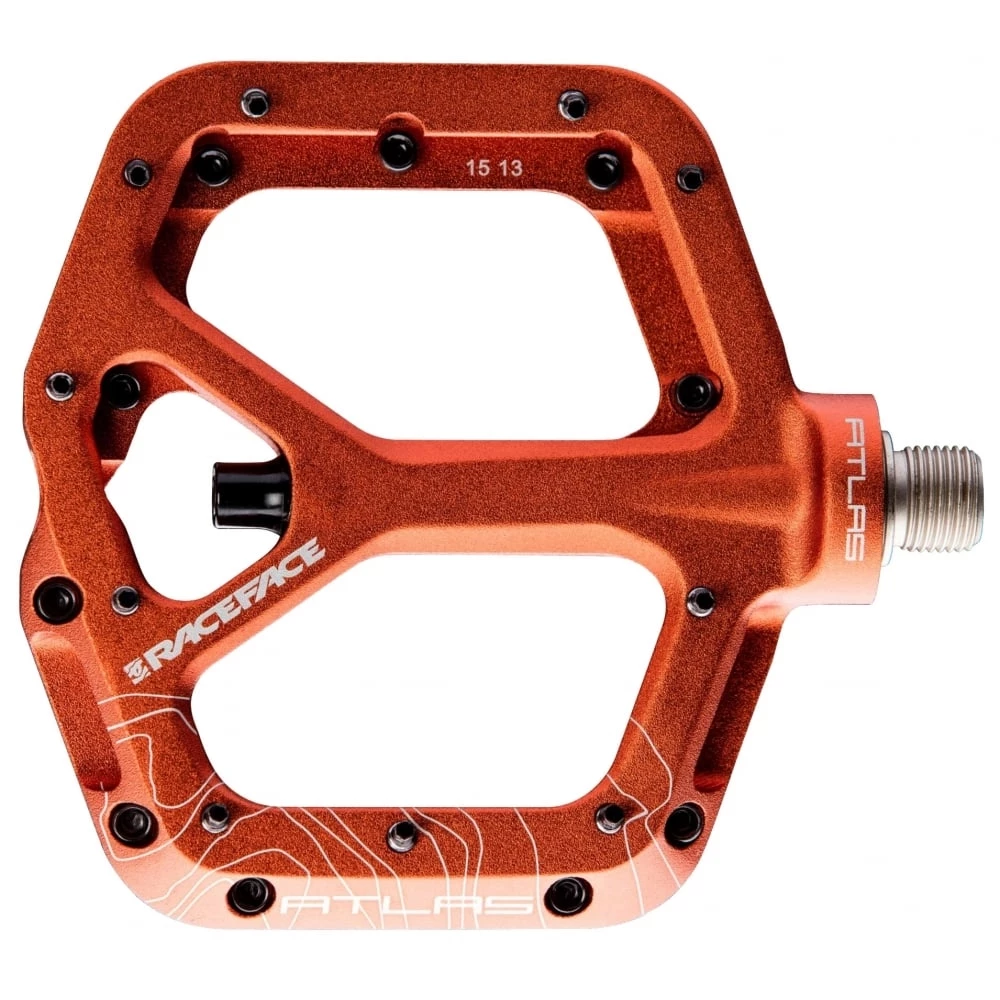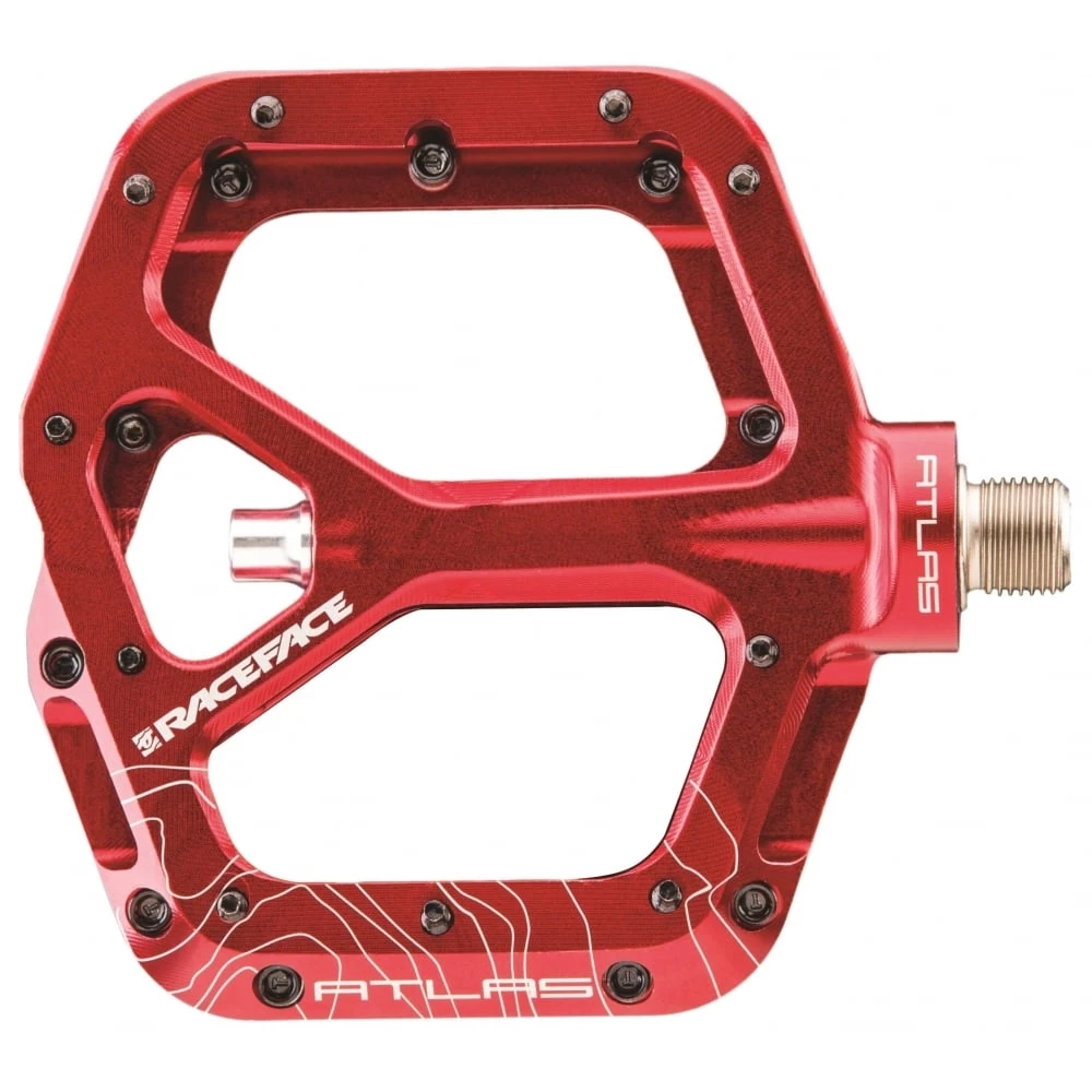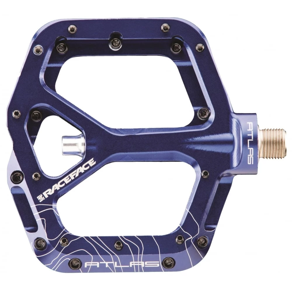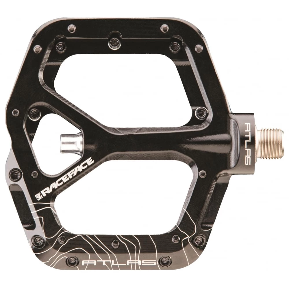 Introducing the Atlas pedal. A low-profile, lightweight, wide aluminum body with double-concave platform. The svelte design makes it perfect for trail bikes while chromoly axle and bottom loading hex traction pins ensure it can take abuse and perform double duty on your DH rig. All of the Race Face styling and performance expected from the Atlas line.