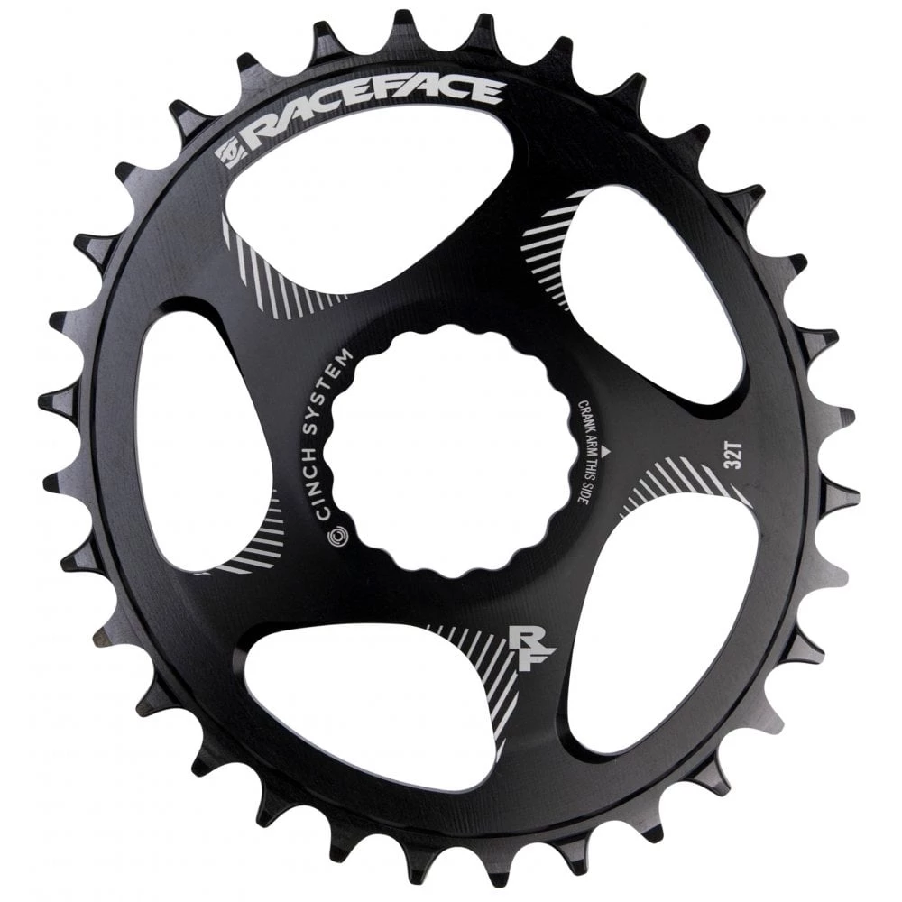 Our new Cinch Direct Mount Oval rings help you put down the watts in the best part of our pedal stroke. Ovals provide enhanced traction control when compared to conventional round rings, particularly in high torque, low cadence riding scenarios. We arrived at an optimal 10% ovality and 112.5° clocking, which can be achieved in both regular and flipped Super Boost positions by following the orientation callout on the rings. Our variable width tooth design will keep chain retention dialed utilizing clutched derailleurs, and is also compatible with many chainguides. Available in 4 of our most popular sizes, the Race Face Oval Ring gives you the advantage during the toughest part of your ride.