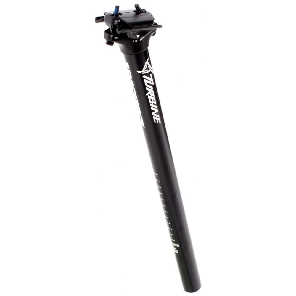 The Turbine seatpost sets a new standard for a performance aluminum post, featuring our new innovative Hunter head design that presents a rider with easy saddle installation, full adjustability and light weight goodness. The aluminum tube is manufactured from 2014 alloy, offering outstanding fatigue & strength for a lightweight XC and trail post.