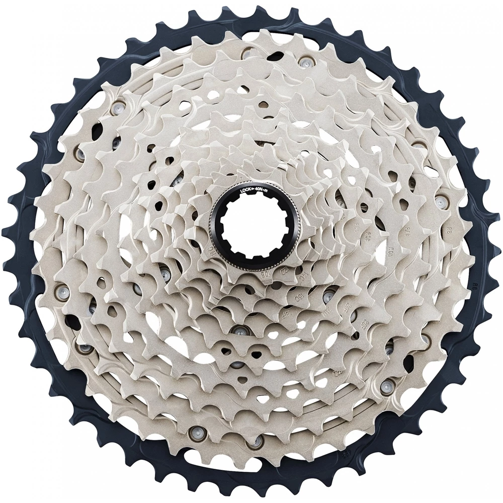 - SLX M7100 12-Speed Micro Spline MTB cassette featuring light weight minimal design sprocket carrier