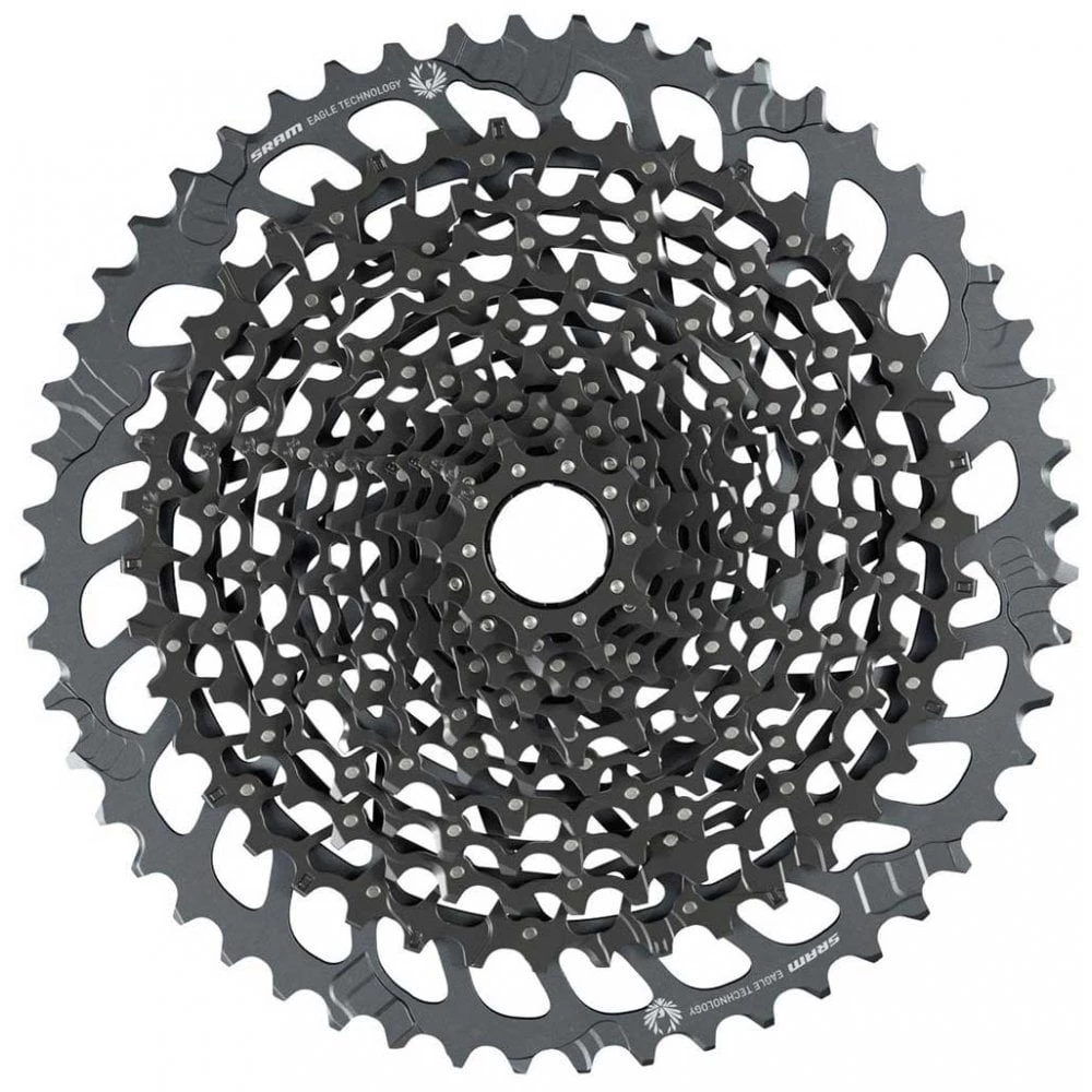 The new 10-52 Eagle cassette for riders who prioritize all day function over anything else. With an expanded, 520-percent gear range giving riders more ability to spin and recover on the burliest climbs. Featuring FULL PIN™ technology that uses lightweight, precision engineered steel cogs permanently connected with high-strength stainless steel pins. An open design similar to our X-DOME™ cassette that aids in mud clearance, giving riders crisp shifting performance and longer component life.