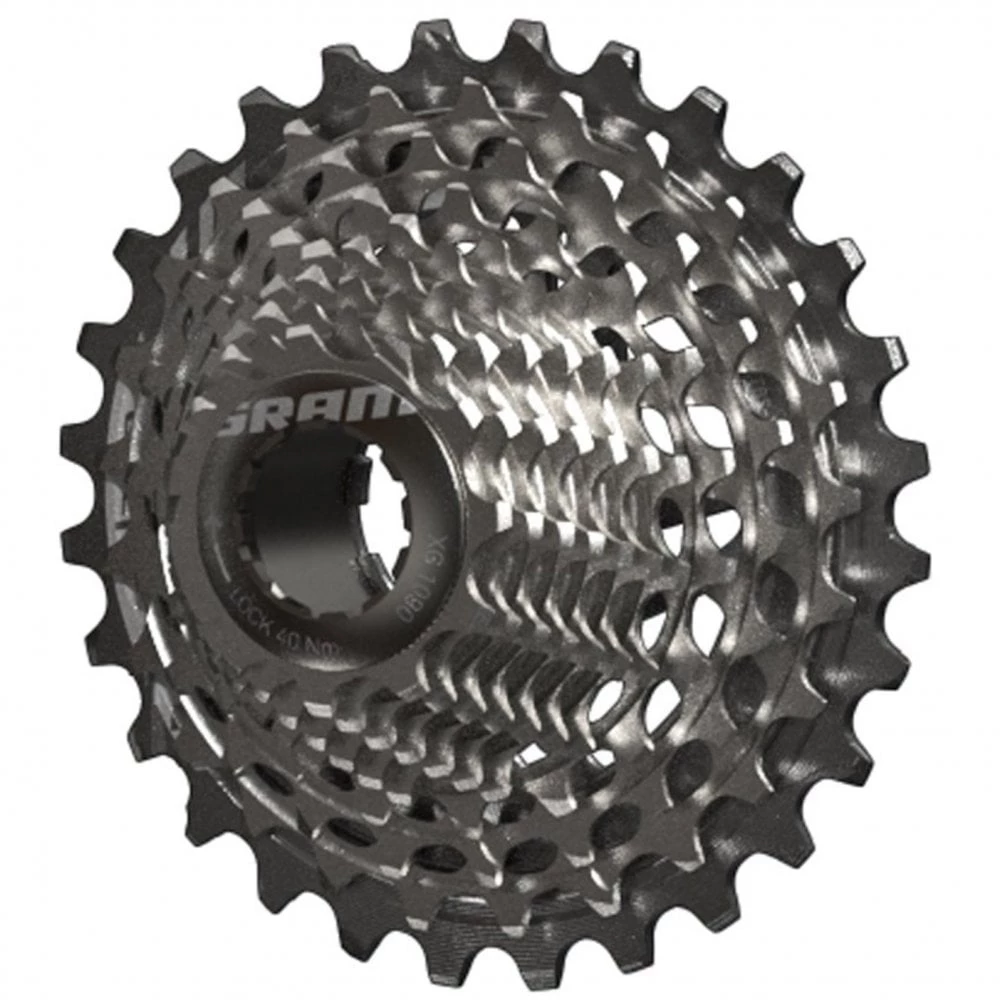 Sometimes all you need is a fresh coat of paint. With revised graphics to match SRAM RED eTap components, the PowerdomeX™ is still the most advanced cassette ever made. Its super light, deadly silent, and delivers an undeniable performance advantage. The nine cogs in the cog cluster are machined from a single block of high grade tool steel, increasing stiffness while weighing even less than a titanium cassette. Between each cog is a StealthRing™ elastomer to reduce vibration and noise. Cutouts on the rear cog further reduce weight and add stiffness. Its the final piece in the drivetrain puzzle, and paired with the new SRAM Red rear derailleur, it delivers ultra-fast, ultra-quiet shifts that will always put you in the right gear.