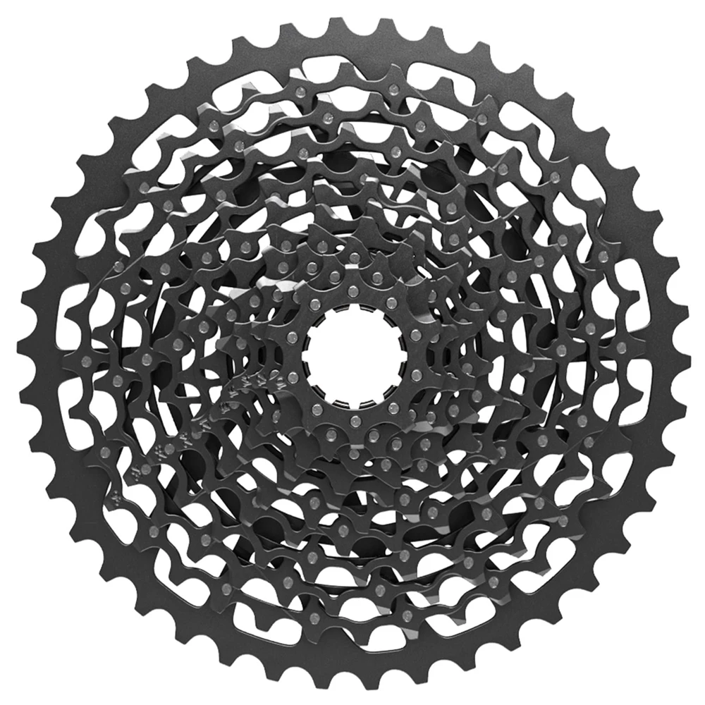 FULL PIN™ technology uses eleven lightweight, stamped steel cogs held together with 123 high-strength stainless steel pins. The result: a cassette that’s light, durable and equipped with SRAM’s super wide 10-42t gear range that’s a perfect fit for any ride. The open design similar to our X-DOME™ cassette aids in mud clearance, giving you cleaner shifting performance and longer component life.