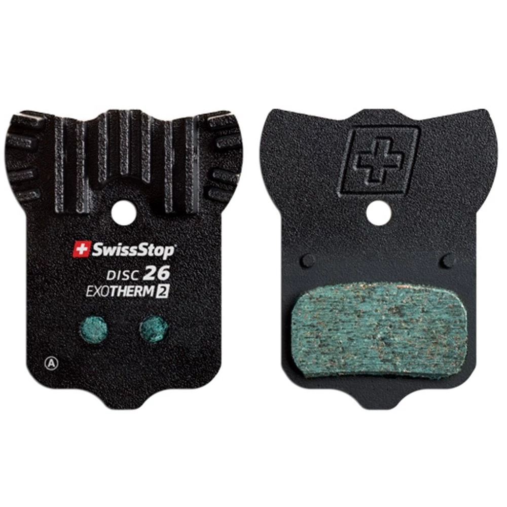 SwissStop EXOtherm 2 pads combine an extremely durable, smooth modulating pad compound with a cooling fin equipped back plate which provides consistent, powerful braking in all conditions.