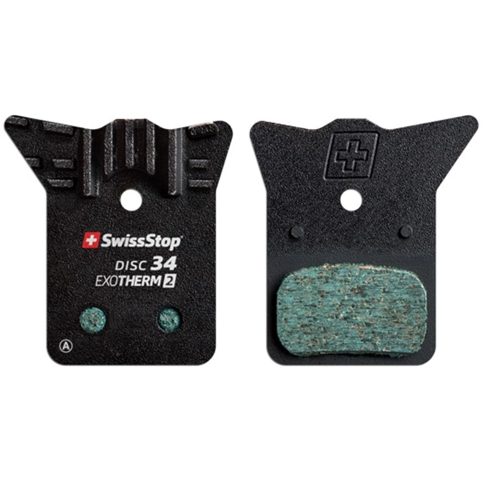 SwissStop EXOtherm 2 pads combine an extremely durable, smooth modulating pad compound with a cooling fin equipped back plate which provides consistent, powerful braking in all conditions.