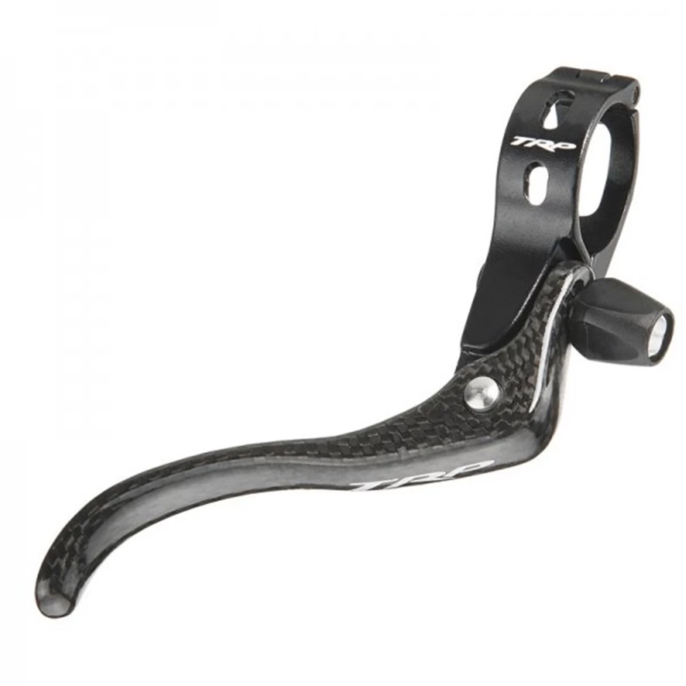 Top mount lever For use with caliper or canti brakes Forged aluminium bracket / Carbon fiber lever Hinged clamp style Adjustable reach Return spring Designed for 24mm OD handlebars RL951-Designed for 31.8mm OD handlebars RL956-Designed for 26mm OD handlebars Black / Carbon 78 grams / pair