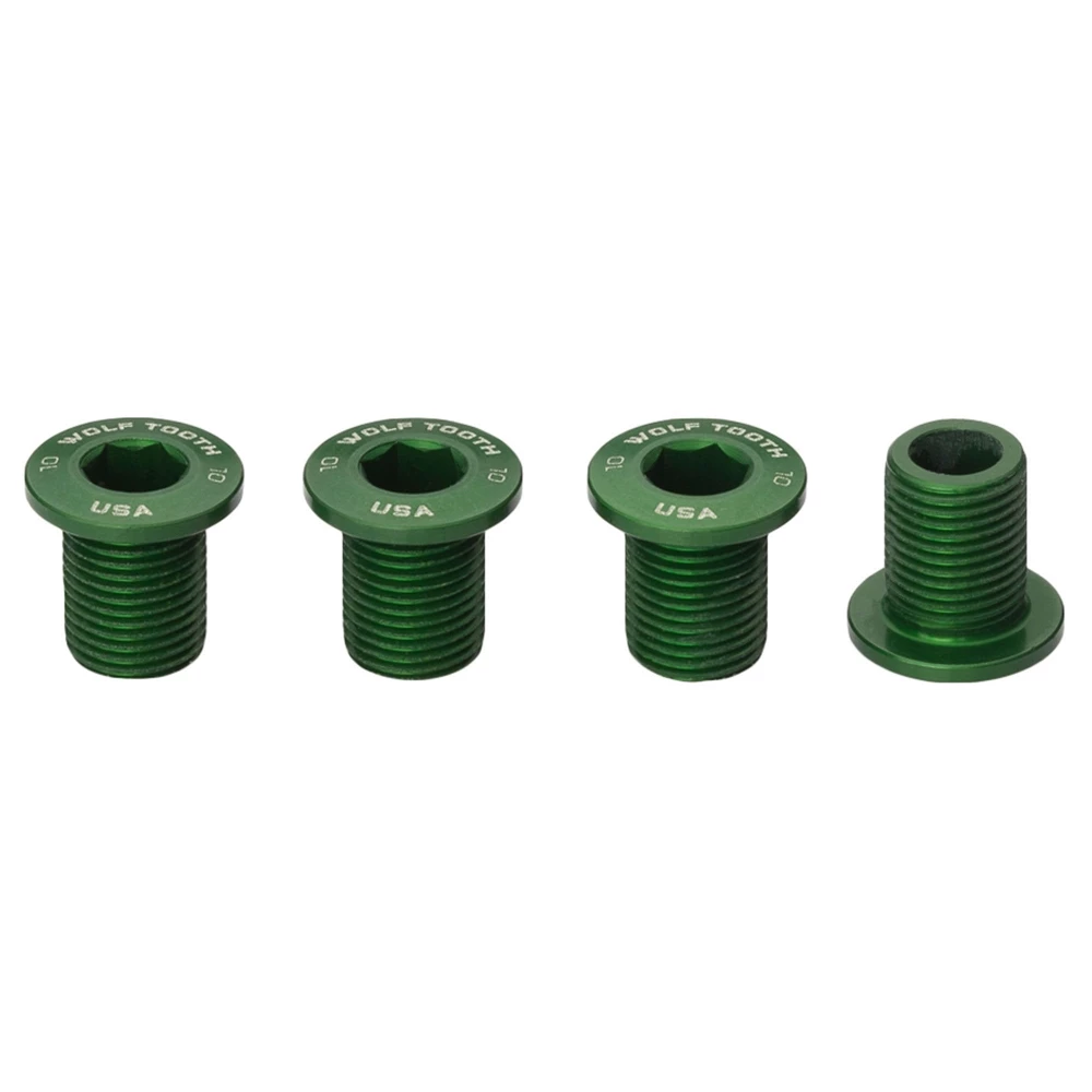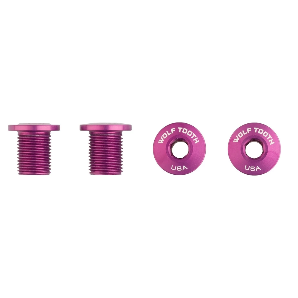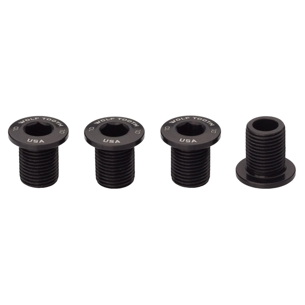 We designed these bolts to be the best on the market. They have a 4 mm hex socket and are 10 mm long so you can use a bash ring with your chainring that has threaded standoffs like our 104 BCD 30t ring, elliptical 104 BCD rings, 76 BCD rings and others. No nuts are included with these bolts as they are intended for use with threaded chainrings. These work great with Wolf Tooth or any other brand threaded M8 x 0.75 chainrings.
