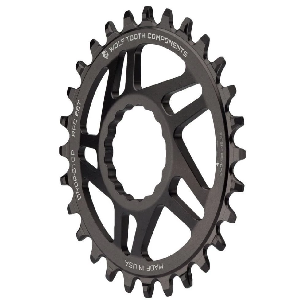 - Wolf Tooth’s patented Drop-Stop® wide/narrow tooth profile for the ultimate chain retention and mud shedding ability