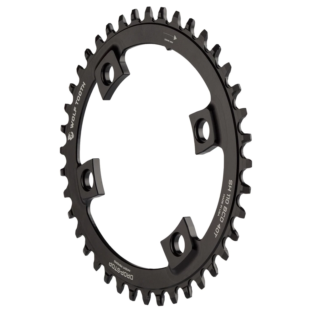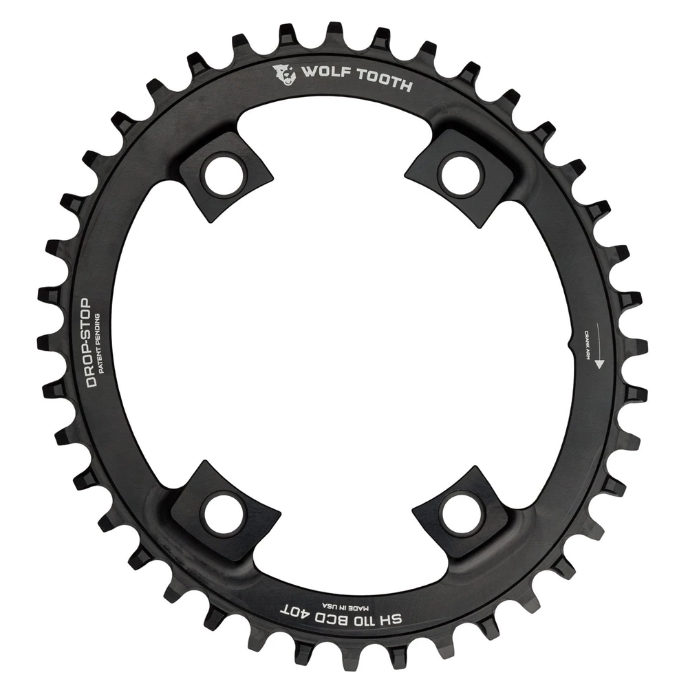 - Wolf Tooth’s patented Drop-Stop® wide/narrow tooth profile for the ultimate chain retention and mud shedding ability