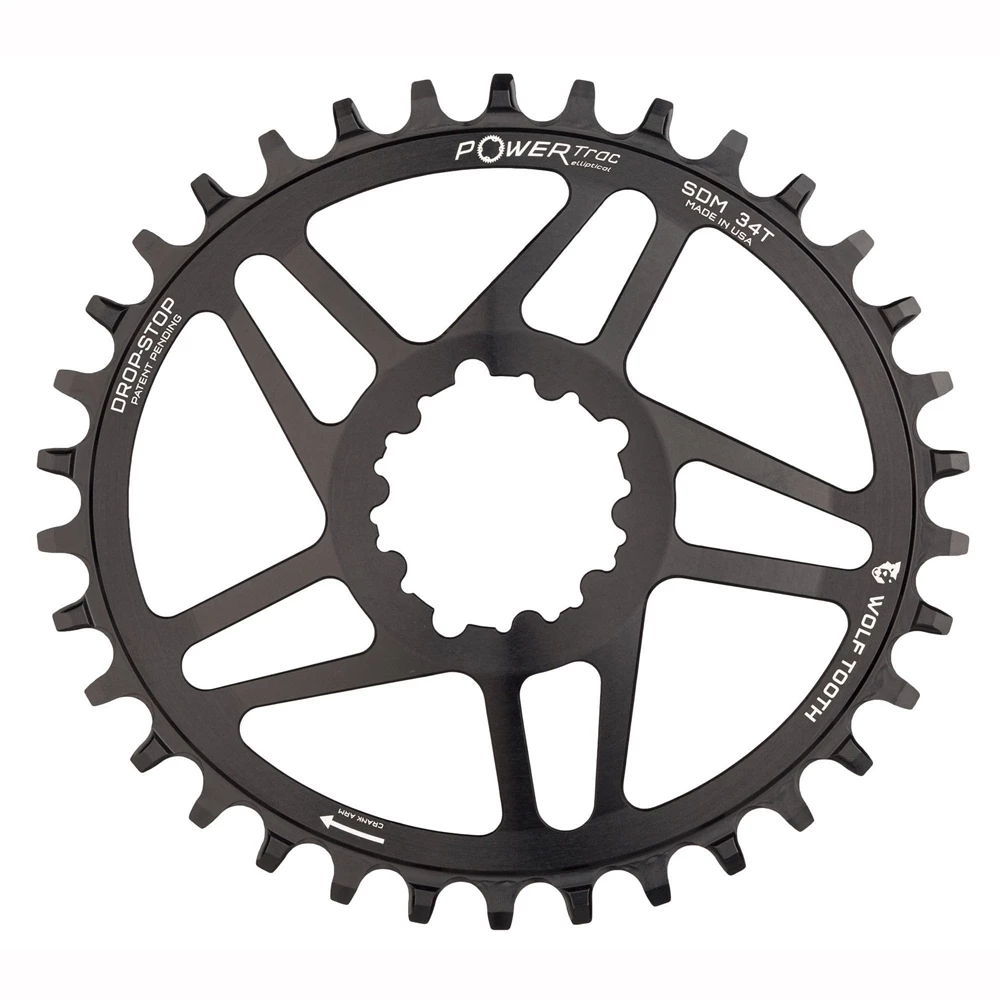 Wolf Tooth note that elliptical rings also mean steadier torque on the rear wheel as there is less spinning on the downstroke and easier rotation in between these. Steadier torque on the rear wheel gives better traction and sustained momentum – great on tough climbs and through headwinds.