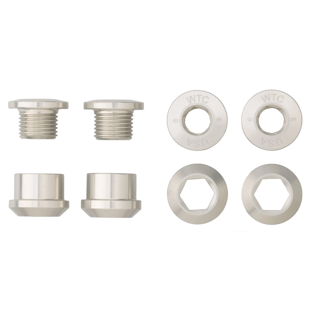 We designed these bolts to be the best on the market. These single chainring optimized bolts have a 4 mm hex socket on the bolt and a 6 mm hex socket on the nut so no spanner is needed. These are 6 mm long so they work perfectly with any bolt on single chainring that does not have threaded standoffs.